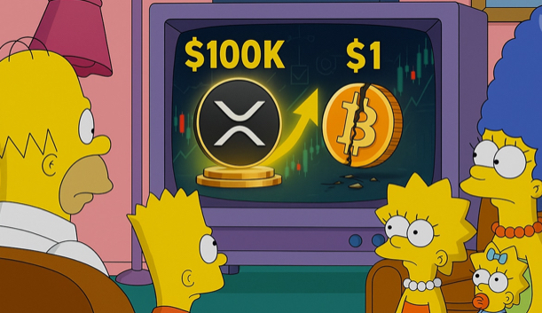 A recent X post by a well-known crypto influencer, WillyWonkaXRP, dramatically claims that “The Simpsons” has predicted that XRP would skyrocket to $100,000 while Bitcoin would plummet to $1.